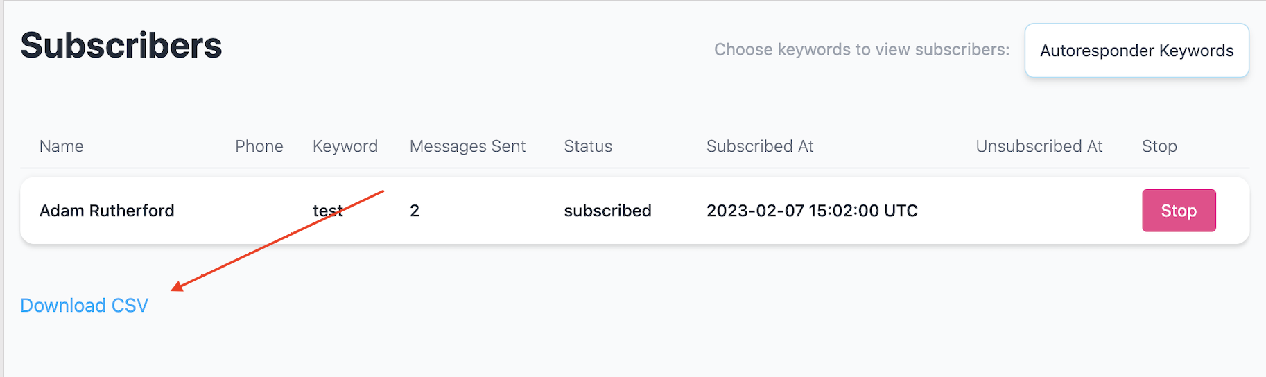 If you'd like to download the list of subscribers in your search results, click on the "Download CSV" option at the bottom of the list.