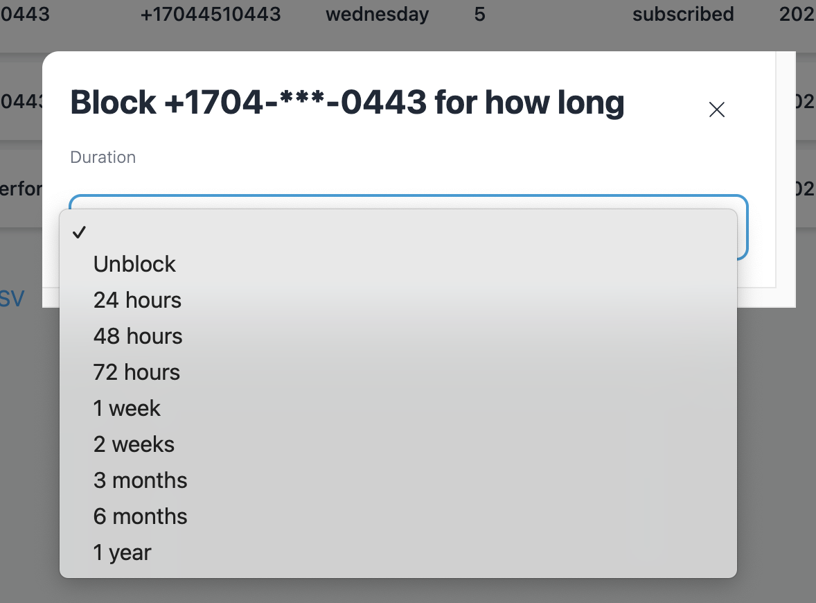 Block - Will allow you to block the subscriber from communicating with Echo for the duration you choose.