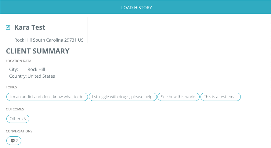 Load History Bar - Click on the load history bar will bring up conversation transcripts from the client's previous conversations.