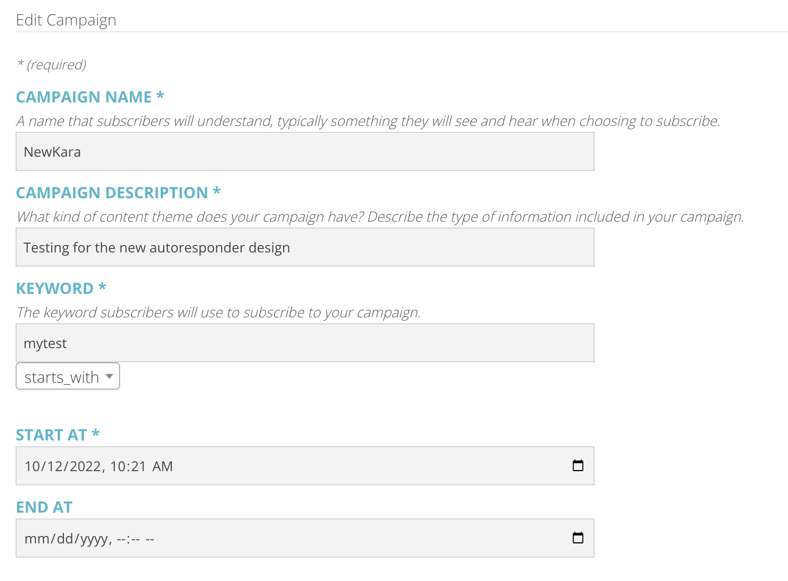 End At: If you want to add a specific date the campaign is over and won't take any more subscribers, you can enter that here. *If you provide an end date for your campaign, Echo will automatically archive your campaign for you one the end date is past.