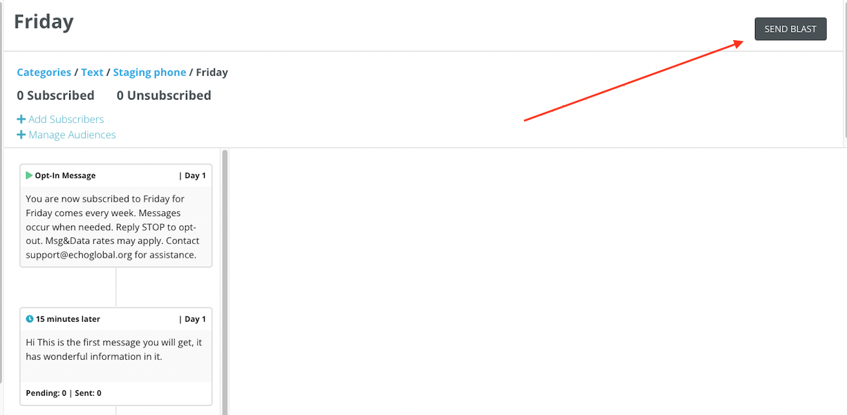 Frequency of Messages: How often the subscriber will be receiving messages from your campaign. (ex. Once a week for 3 weeks, Twice a week)